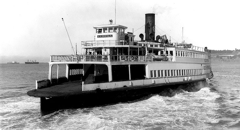 The ship originally carried commuters between San Francisco and Tiburon during the day and hauled railroad freight cars at night.