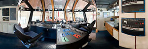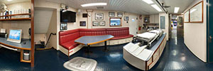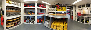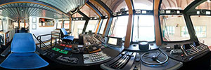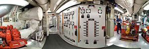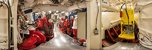 Ten fire monitors are driven by two 1,575-hp diesels at up to 38,000 gpm. The large monitors shoot water 600 feet at 14,500 gpm. Two under wharf nozzles in the stern discharge water at 2,000 gpm. There are also 6,000 gallons of foam concentrate available and multiple foam-capable monitors.