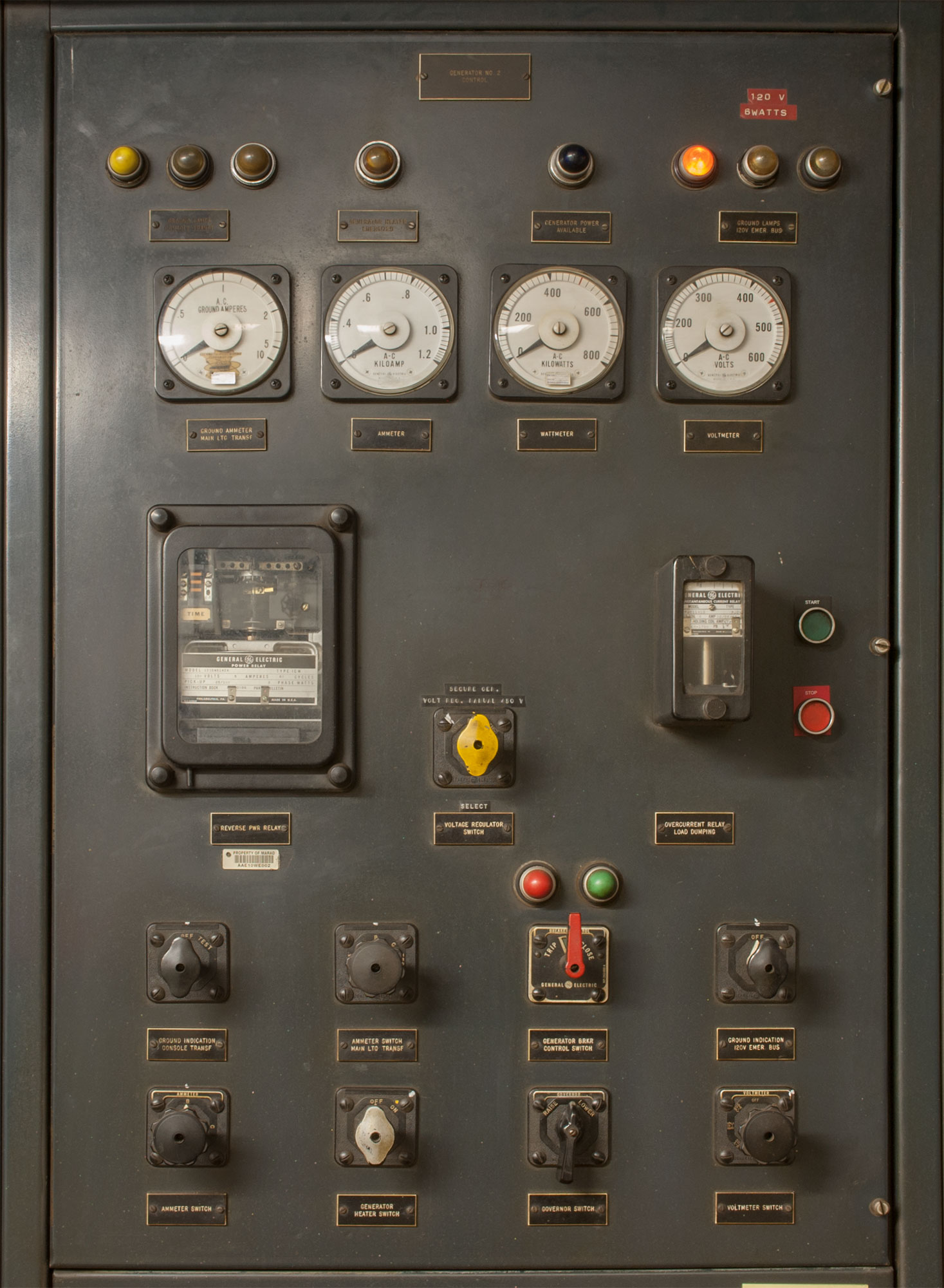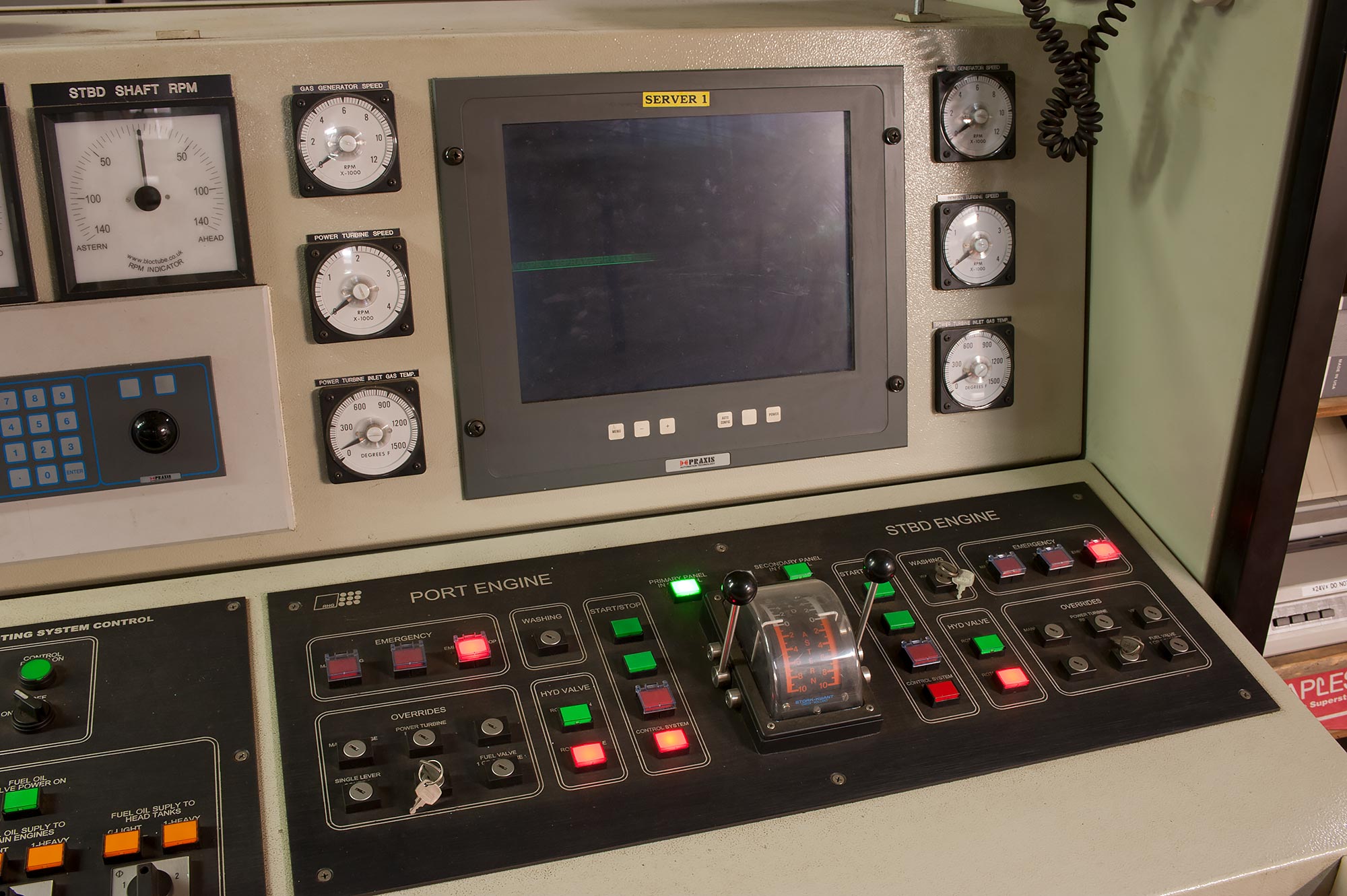 Control area, forward end of the auxiliary machinery space (port side). Panning left is the doorway that leads to the aft end of the engine room.