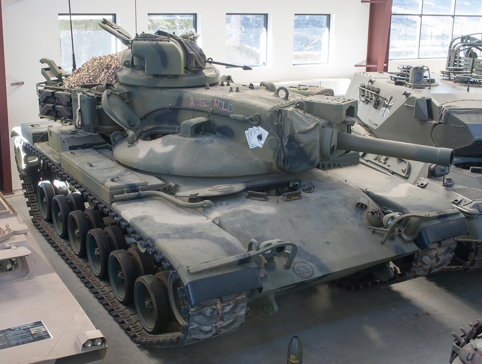 The M60 Patton, officially the 105 mm Gun Full Tracked Combat Tank, M60, is a main battle tank (MBT) introduced in December 1960. It was widely used by the U.S. and its Cold War allies, especially those in NATO, and remains in service throughout the world today despite having been superseded by the M1 Abrams in the U.S. military. [Wikipedia]