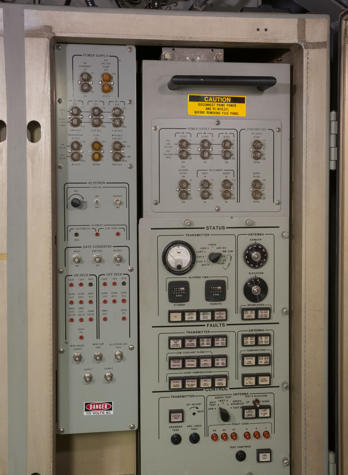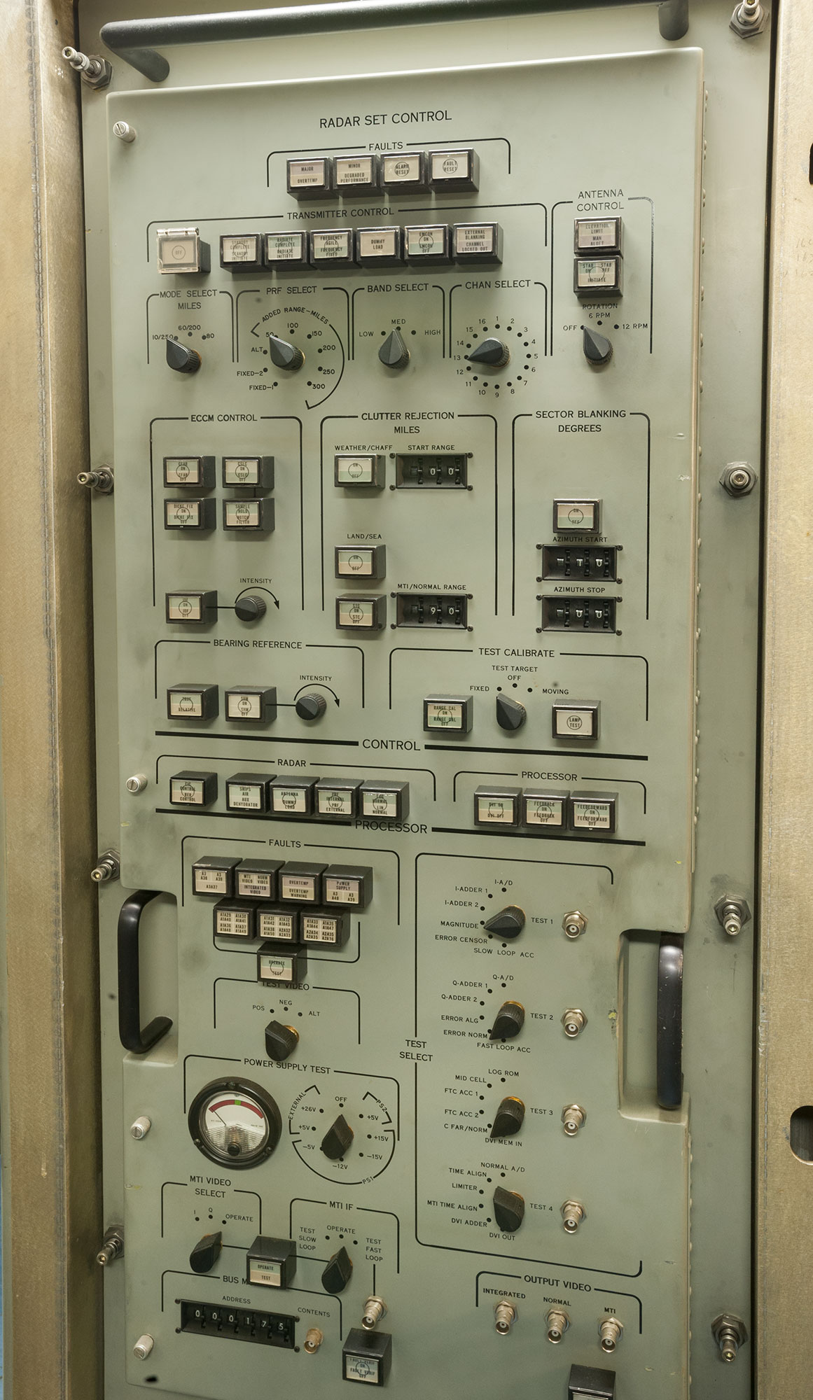 AN/SPS-49 Radar Room (05-101-2-C). The AN/SPS-49 is a two-dimensional, long range air search radar that can provide contact bearing and range.