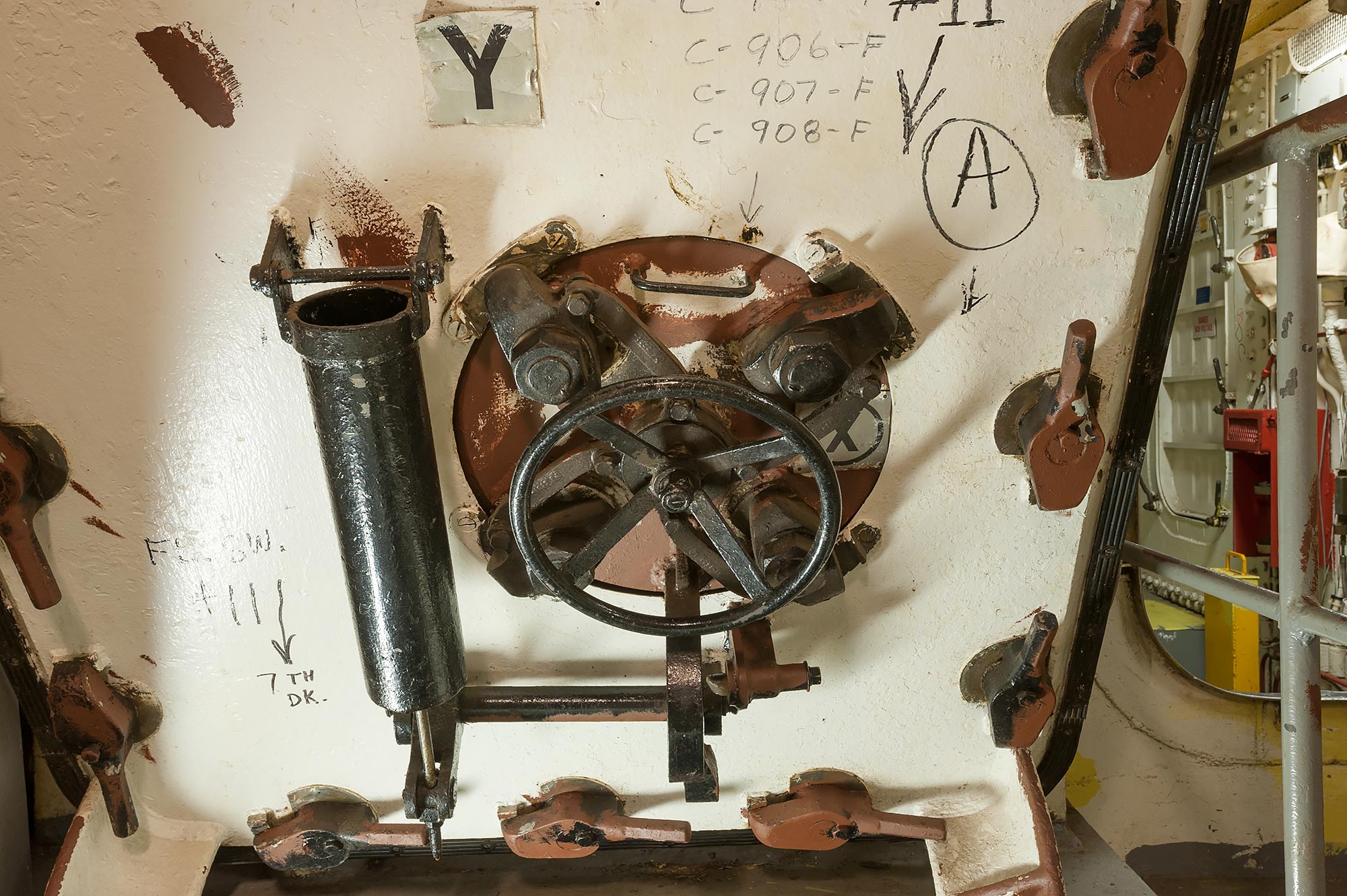 Passage (3-151-0-L). Inital view looking forward with the trunk to Forward AMR on the left and the entrance to the aft end of Broadway on the right.
