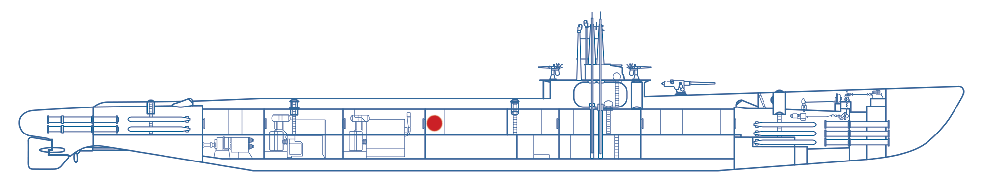Located in the after section of the after battery compartment is the crew's head with 2 toilets, the washroom, 2 showers and a washing machine. About 70 men shared these facilities. There is piping from the drip pans on the air conditioning evaporators in the crew's berthing to supply some of the water for the washing machine. Even so, the washing machining was removed from many of the boats after WW II because there was rarely enough water for its use.