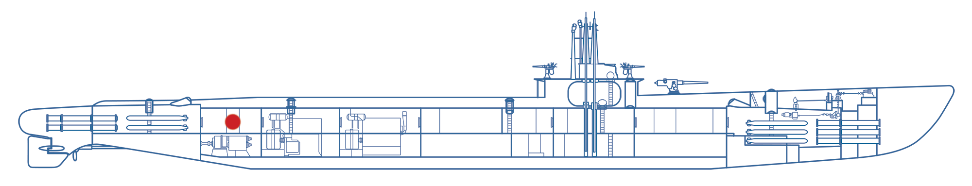 This photo is taken from inside the aft section of the switching cubicle. You can see high current bus bars, current limiting devices and remove switch activators.